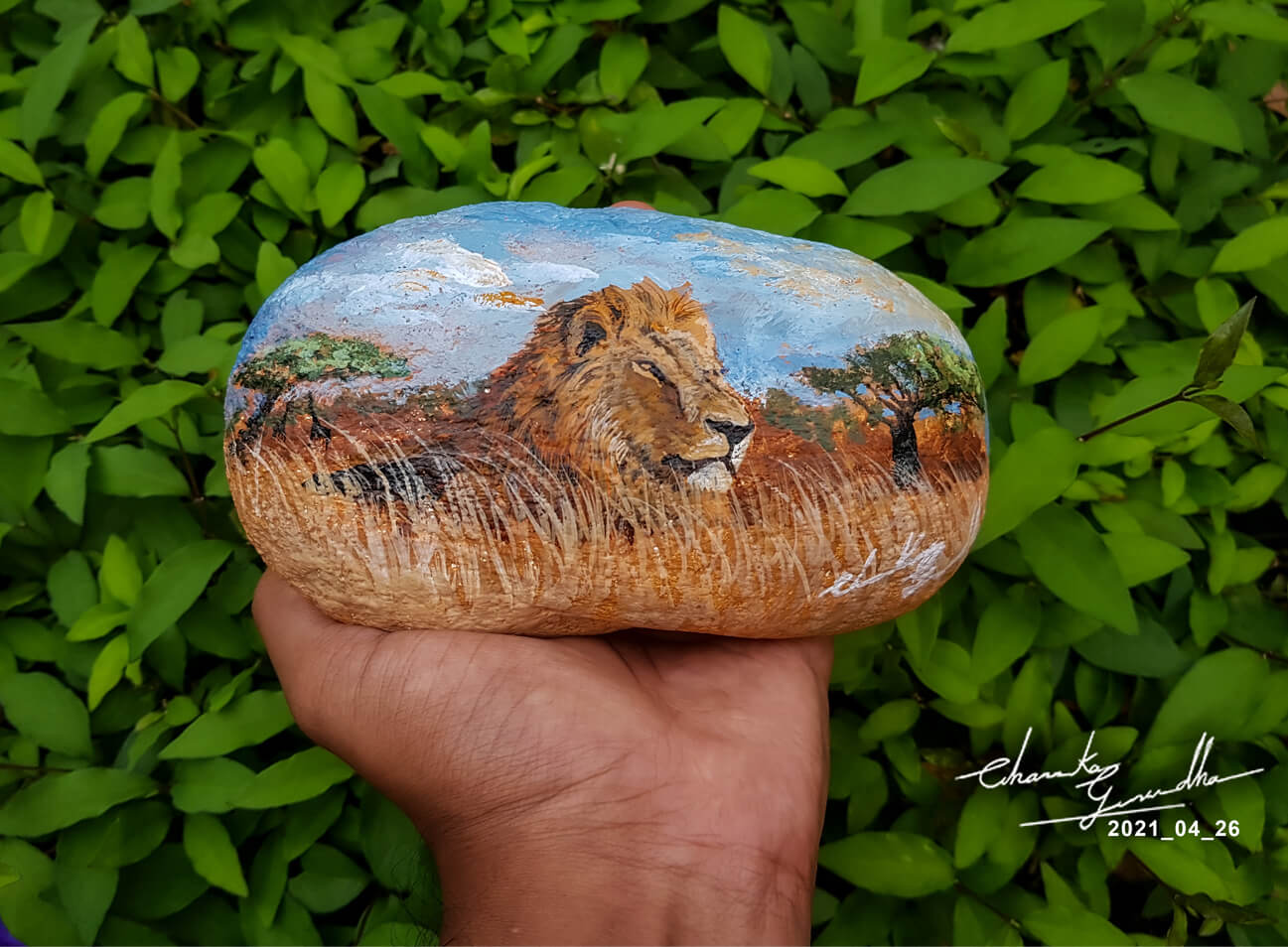 Acrylic on River Rock